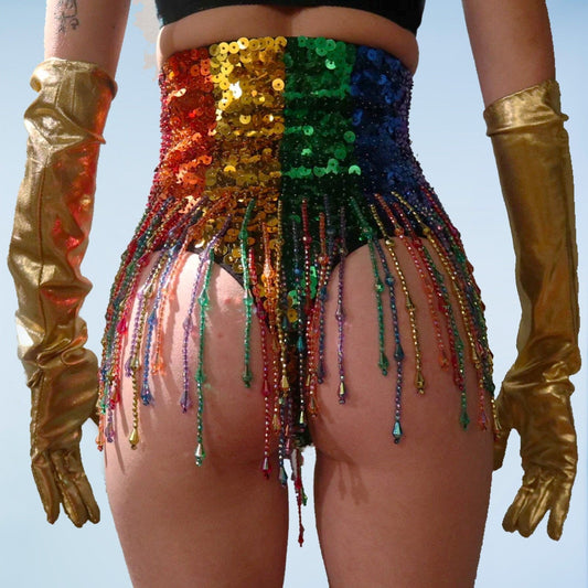 Rainbow Dotty Cheeky High Waist Sequin Shorts
