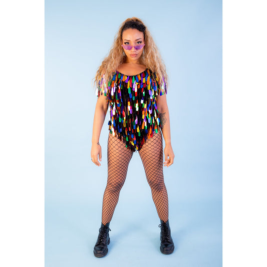Neon Rainbow Jewel Backless Sequin Bodysuit