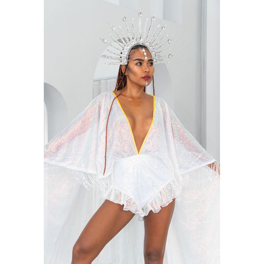 Floaty White Sequin Playsuit Cape