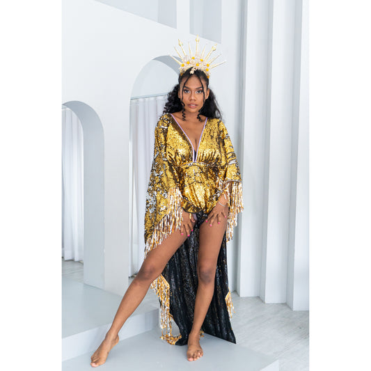 Midnight Gold Playsuit Sequin Cape