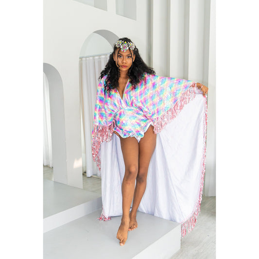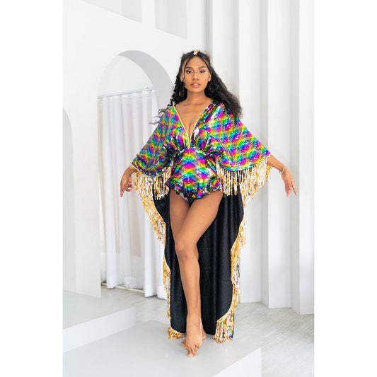 Rainbow Shimmer Sequin Playsuit Cape