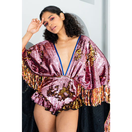 Pink Champagne Sequin Playsuit Cape